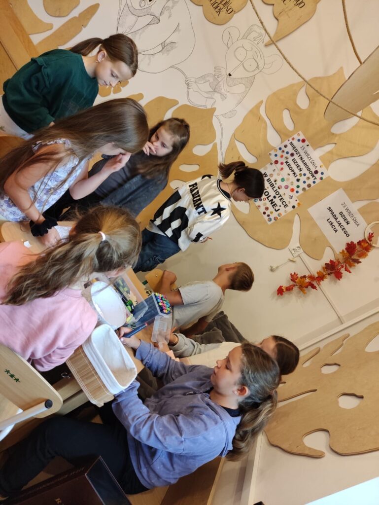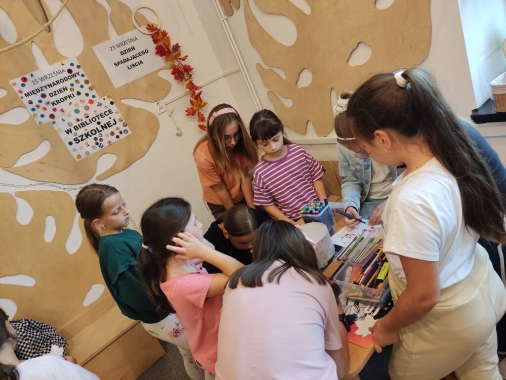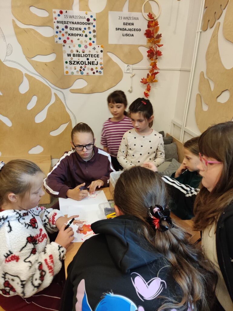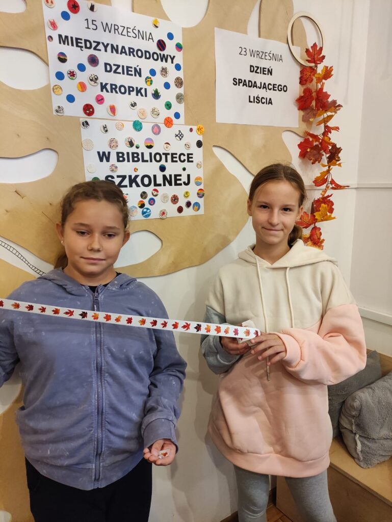 Jesień to pora roku, która uczy spokoju i akceptacji przemijania. W kalendarzu nietypowych świąt swoje miejsce znalazł także Dzień Spadającego Liścia, obchodzony co roku 23 września. To data symboliczna – związana z początkiem astronomicznej jesieni. Jego pomysłodawcą jest poeta i podróżnik – Jerzy Szewczyk z Zielonej Góry. W świecie pełnym pośpiechu i hałasu Dzień Spadającego Liścia zachęca do zatrzymania się na chwilę i… sięgnięcia po ciekawą książkę. W szkolnej bibliotece w tym dniu można było pomalować swój liść, podzielić się radosnymi skojarzeniami z jesienią, a każdy czytelnik otrzymał kolorowy listek oraz jesienne naklejki.
