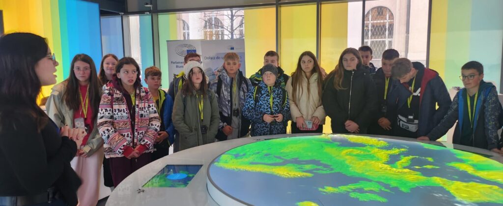 Pierwszy dzień wizyty w Warszawie rozpoczął się od zwiedzania Centrum Multimedialnego Europa Experience, w którym uczestnicy mogli wcielić się w rolę posłów do Parlamentu Europejskiego i w interaktywny sposób poznać zasady działania instytucji Unii Europejskiej. Była to znakomita lekcja demokracji i integracji europejskiej. Kolejnym punktem programu był spacer z przewodnikiem po najpiękniejszych zakątkach Warszawy. Młodzież odwiedziła m.in.: Stare Miasto i Rynek, Pomnik Syrenki, Zamek Królewski, Krakowskie Przedmieście, Grób Nieznanego Żołnierza oraz Łazienki Królewskie. Po południu uczestnicy udali się do Narodowego Centrum Pieniądza, gdzie obejrzeli wystawę poświęconą historii i roli pieniądza w gospodarce. Wycieczka zakończyła się wizytą na 30. piętrze Pałacu Kultury i Nauki, skąd podziwiano imponującą panoramę Warszawy.
