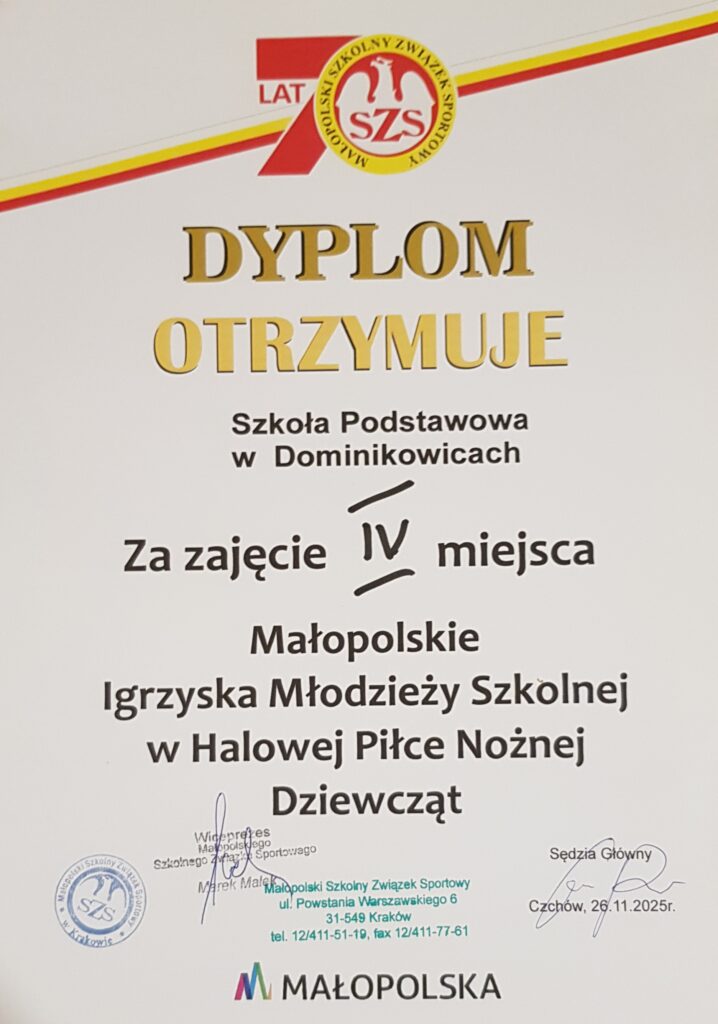 Małopolskie Igrzyska Młodzieży Szkolnej w Halowej Piłce Nożnej Dziewcząt – Czchów, 26.11.2025 r.