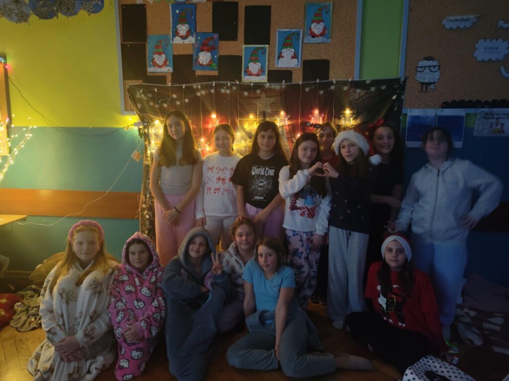 W magicznej atmosferze zbliżających się Świąt Bożego Narodzenia uczniowie klasy czwartej spotkali się na wyjątkowym, mikołajkowym wieczorze filmowym. Migoczące światełka i zimowe dekoracje stworzyły idealne tło do wspólnego spędzenia czasu w radosnym, świątecznym nastroju.