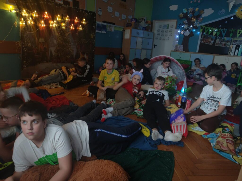 Główną atrakcją wieczoru był seans filmu przedstawiającego pełne humoru i ciepła przygody Mikołajka. Wspólne oglądanie ulubionych bohaterów dostarczyło wielu powodów do śmiechu i stworzyło idealną okazję do integracji grupy.