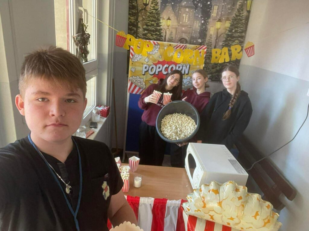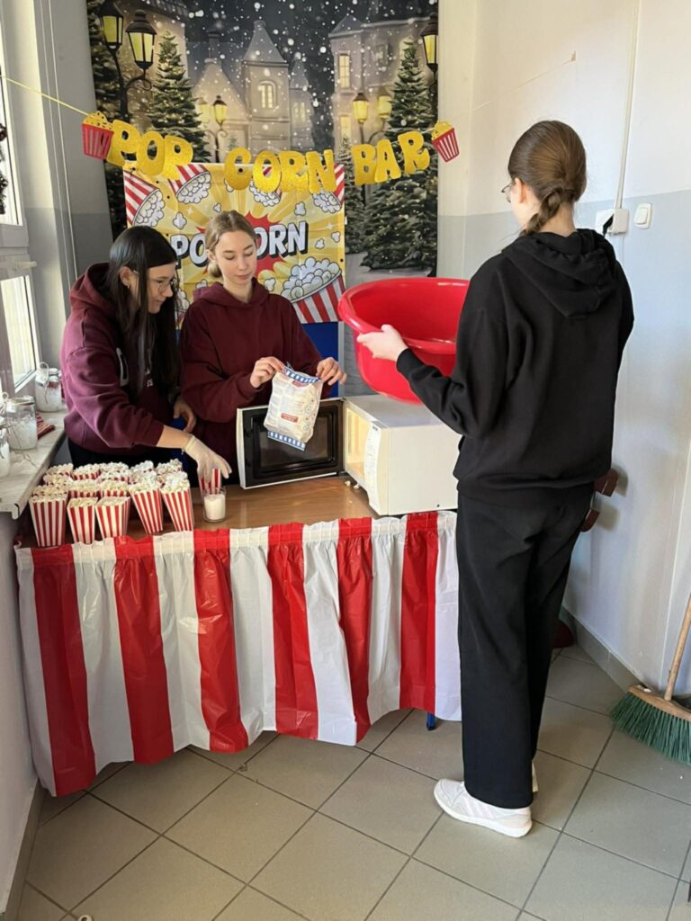 Wbrew pozorom popcorn może być zdrową przekąską – zawiera błonnik i jest niskokaloryczny pod warunkiem, że nie dodaje się do niego dużej ilości soli czy masła. Dzięki temu chętnie sięgają po niego zarówno dzieci, jak i dorośli. Właśnie dlatego Samorząd Uczniowski zorganizował w naszej szkole Dzień Popcornu. Podczas przerw uczniowie mogli nabyć pyszny, pachnący popcorn i w ten sposób umilić sobie czas między lekcjami. Wydarzenie cieszyło się bardzo dużym zainteresowaniem.