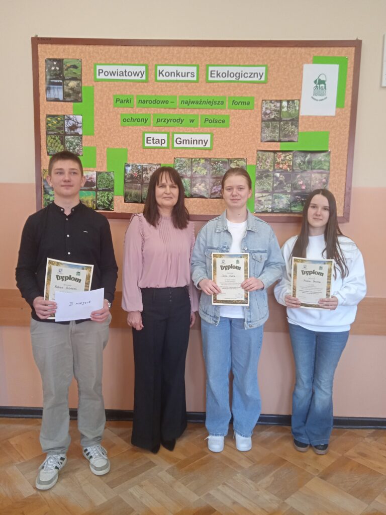 Tytuł tegorocznych zmagań to „Parki narodowe – najważniejsza forma ochrony przyrody w Polsce”. 19 marca br. do rywalizacji przystąpili uczniowie ze szkół w Bystrej, Ropicy Polskiej, Stróżówce, Zagórzanach i Dominikowicach. Naszą szkołę reprezentowali: Julia Glista i Fabian Ostrowski z klasy VIII a oraz Milena Dranka z klasy VII.