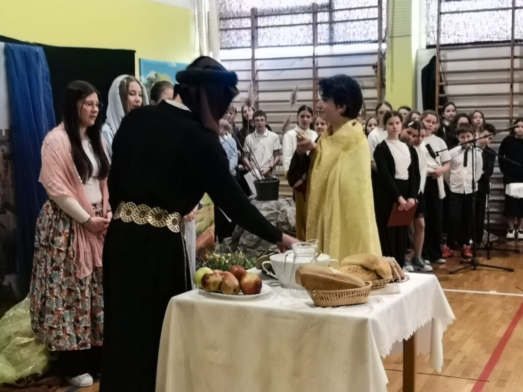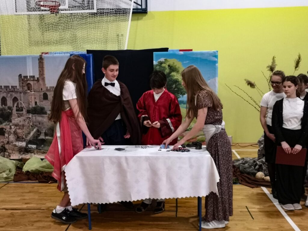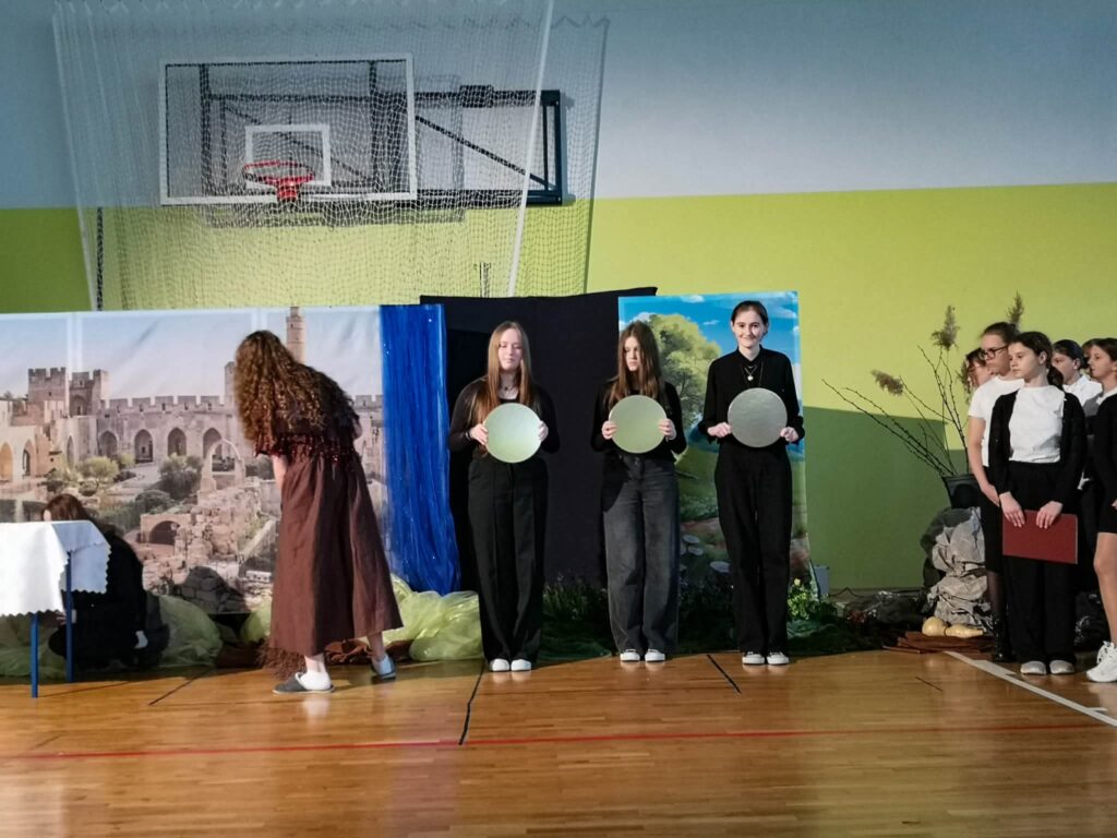 W poniedziałek, 30 marca, cała społeczność szkoły brała udział w apelu wielkanocnym. Tym razem uczniowie klas ósmych pod opieką ks. Kamila Stącla MS zabrali nas w podróż do starożytnej Ziemi Świętej. Dokonali tego odgrywając trzy przypowieści z 15. rozdziału Ewangelii wg św. Łukasza w zjawiskowej scenografii wykonanej przez panią Zofię Marszałek.