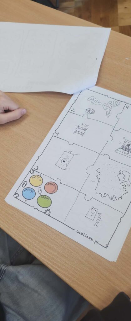 Uczniowie mieli okazję rozwijać swoje umiejętności poprzez tworzenie notatek wizualnych. Inspiracją do zajęć były kwadraciaki, których autorką jest pani Agnieszka Halama. To narzędzie pozwoliło uczestnikom spojrzeć na przekazywane treści w nowy, bardziej obrazowy sposób i uruchomić kreatywne myślenie.
